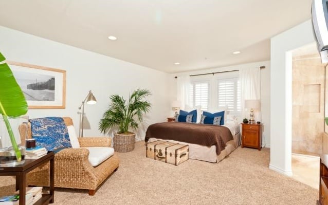 Travertine floors flow throughout the kitchen which features granite counters, stainless steel appliances, nook and breakfast bar which overlooks the living space with marble fireplace, travertine floors, abundant ocean views and access to the rear patio. Relax in the spacious master suite and sumptuous master bath with dual marble vanities, separate shower and oversized sunken tub.