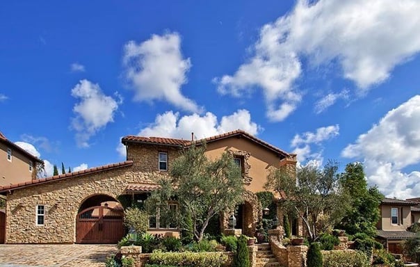 Escape into your own private world at this custom caliber estate. Sequestered beyond the gates of Rancho Madrina, the 5 bedroom, 6 bath residence embraces approximately 5,500 square feet of professionally decorated living space that exhibits an oval 2 story foyer with curving staircase, a fireplace warmed formal living room, a formal dining room with French doors, an office, and loft with entertainment center. Enjoy casual entertaining in an expansive great room and kitchen area with separate staircase, fireplace, built-in entertainment center, nook, island, granite counter tops, double sized refrigerator, 2 dishwashers, and a butler's