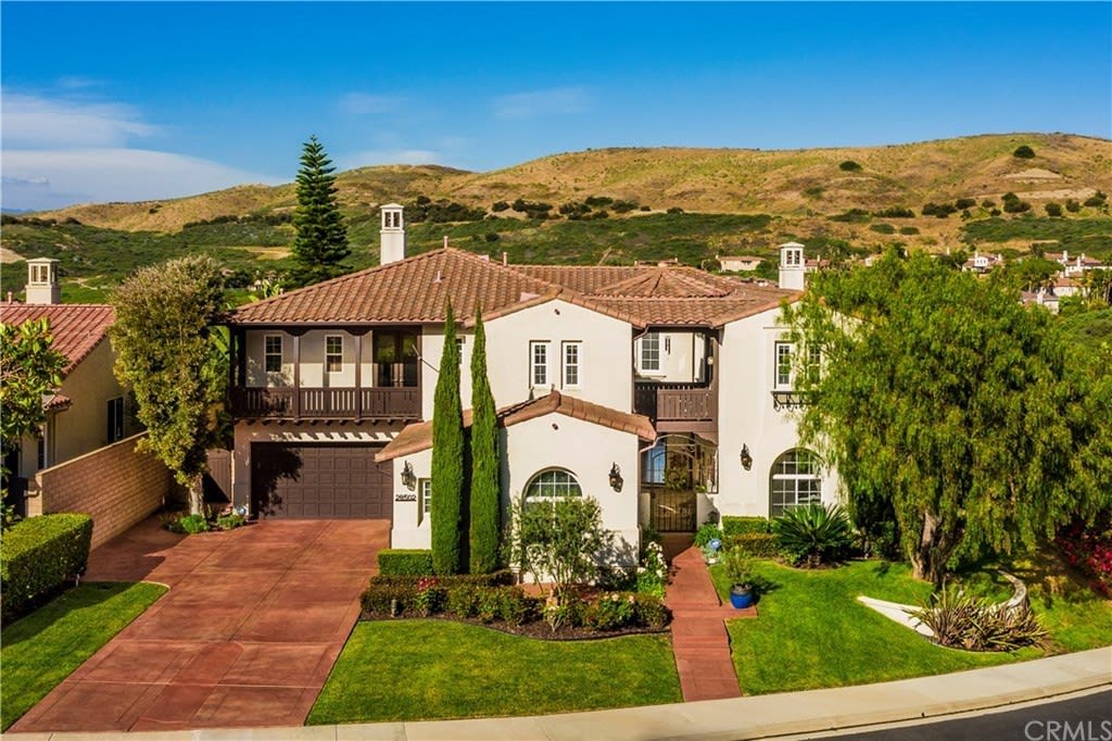Rarely on the market! Stunning, ideal large floor plan with coveted 4 car garage, private hill views and no Mello Roos! Nestled behind San Juan Hills Estates gate, resides this turn-key, Santa Barbara style, meticulously cared for home offering unrivaled open concept living. Large lot with exquisite exterior sits high on corner, offering panoramic hill views from nearly every side. Artfully designed, this 5 Bedroom, 4.5 Bath home is just minutes from the beach, Dana Point harbor, historic San Juan downtown, horse and walking trails, San Juan Hills Golf Course and prestigious schools. Enjoy tranquil backdrop from entertainers’ yard with over-sized spa, built-in barbecue and custom fire pit. Charming courtyard leads to striking entry facing light infused living/dining room with high ceilings, grand