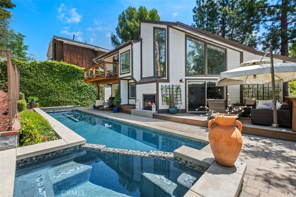 Step inside this very unique and remodeled pool home in The Village community in Coto de Caza. This 3 Bedroom, 3 Bath home encompasses approximately 2,185 square feet and features modern and sleek amenities that make it very special. The kitchen is a cook's delight with Viking appliances and a Subzero refrigerator. The concrete peninsula floats between the kitchen and the dining room and contains abundant storage and a working counter for cooking or a buffet island for serving. There are high ceilings and beautiful windows to bring natural light in from the outside and views of the soaring pine trees. Downstairs you have 2 very large guest bedrooms, one with the bathroom en suite which could be a 2nd Primary. The additional bathroom downstairs is a full bath outfitted with a large zero clearance walk in shower. Upstairs is entirely dedicated to the Primary Suite and Bath. The Primary Bath is very spa like and has a large soaking tub and a beautiful glass enclosed shower area. There is an additional space for a vanity area or additional closet space. The rear of the home features your own private pool and spa with complete privacy as there is nobody behind the home and a large open space. The home has been customized throughout and is a delight to see. There is also an additional loft space above the garage area which can serve as a private retreat or office area. The house has many custom features that must be seen to be appreciated. Whole house Life Source water filtration as well. Located in the coveted Village community of Coto de Caza, enjoy access to world-class amenities Coto de Caza Golf and Racquet Club (optional memberships available), equestrian facilities, hiking trails, and more.